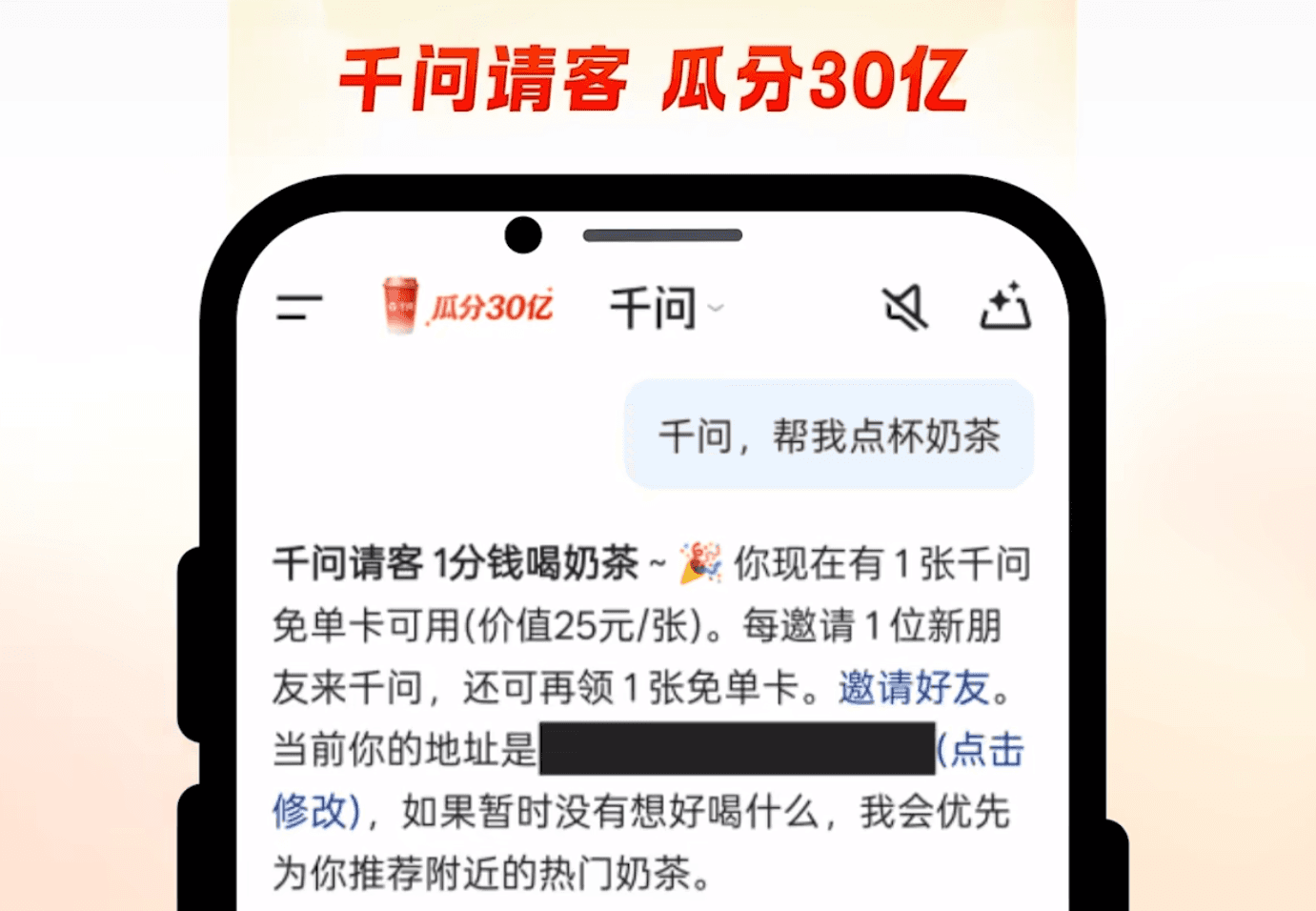 This became viscerally real during China’s 2026 Spring Festival Gala. Alibaba spent 3 billion RMB on a campaign called “Spring Festival Treat Plan” — encouraging users to order milk tea through Qwen App with just one simple words. No scrolling through a delivery app. No browsing menus. Just: “Get me an oolong milk tea with less sugar.”